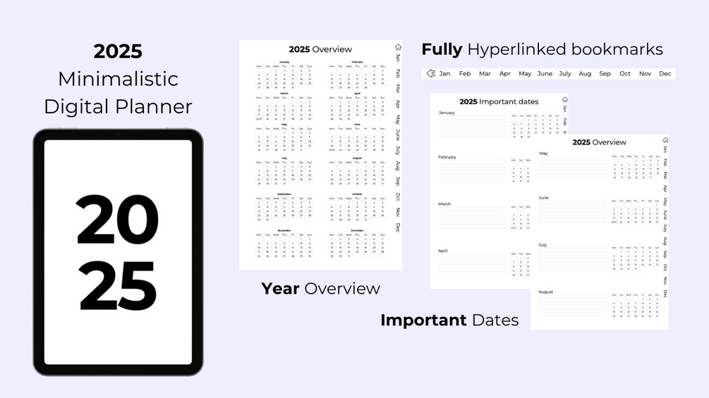 You'll get a Digital 2025 Yearly Planner(PDF) with yearly, monthly, and weekly layouts.